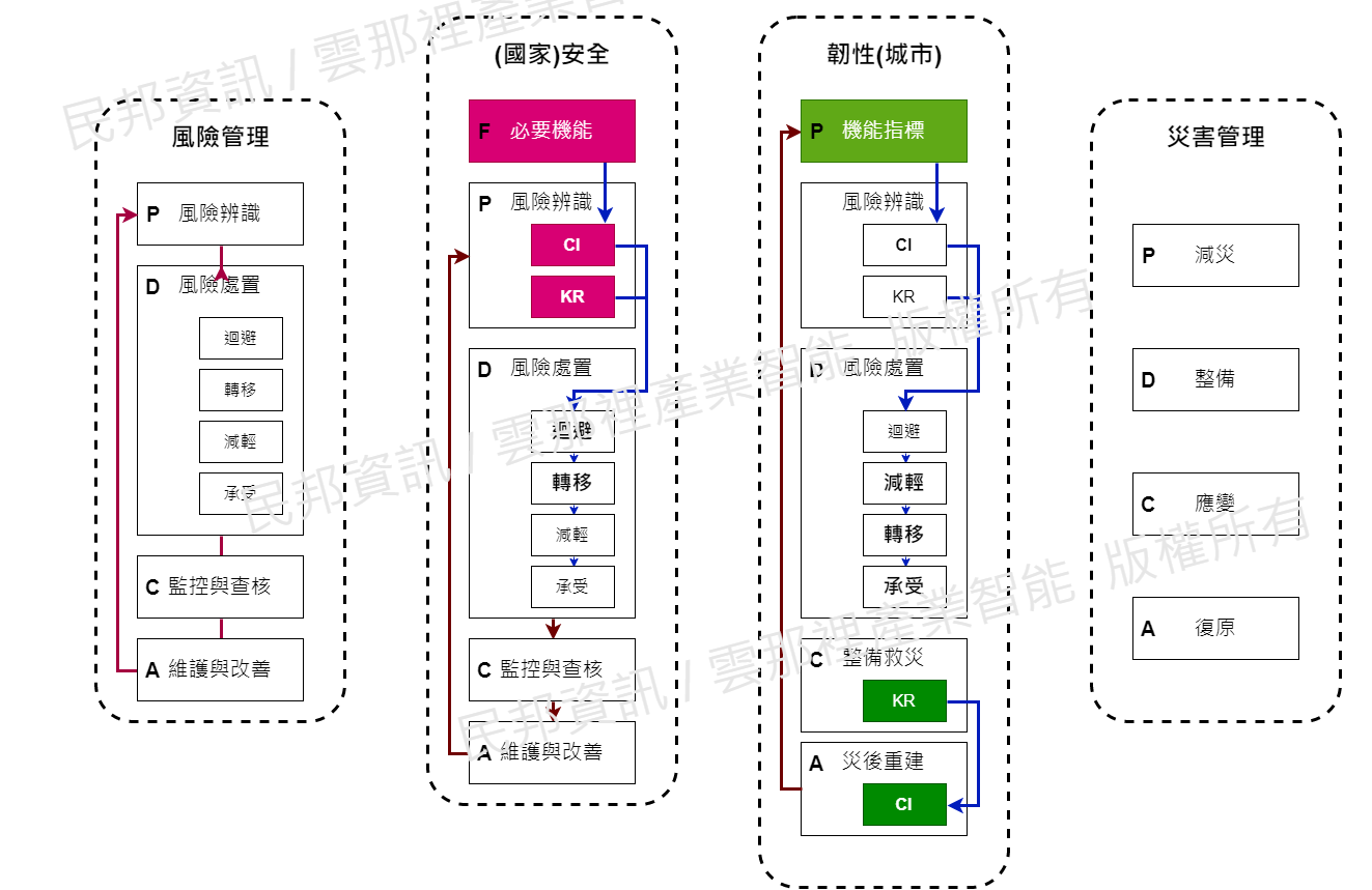 雖然關鍵基礎設施和韌性城市聽起來很高大上,圖片裡也是舉國土安全的必要機能當例子(因為它不得不做嘛!),其實不然,任何組織、企業或個人也都適用類似的觀念,只不過企業在乎更多的可能是營利與業務永續,個人更在乎的是安全和生活穩定。