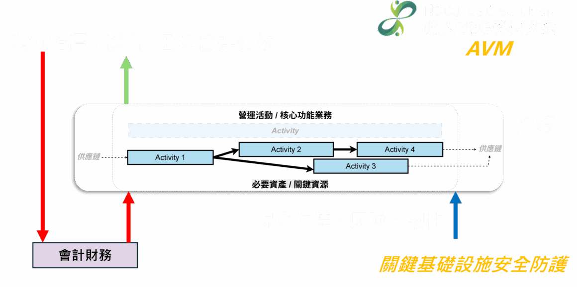 企業的營運活動創造價值也隱含風險,價值面可參考AVM (Activity Value Management);風險面則可參考關鍵基礎設施安全防護 (Critical Infrastructure Protection, CIP)。