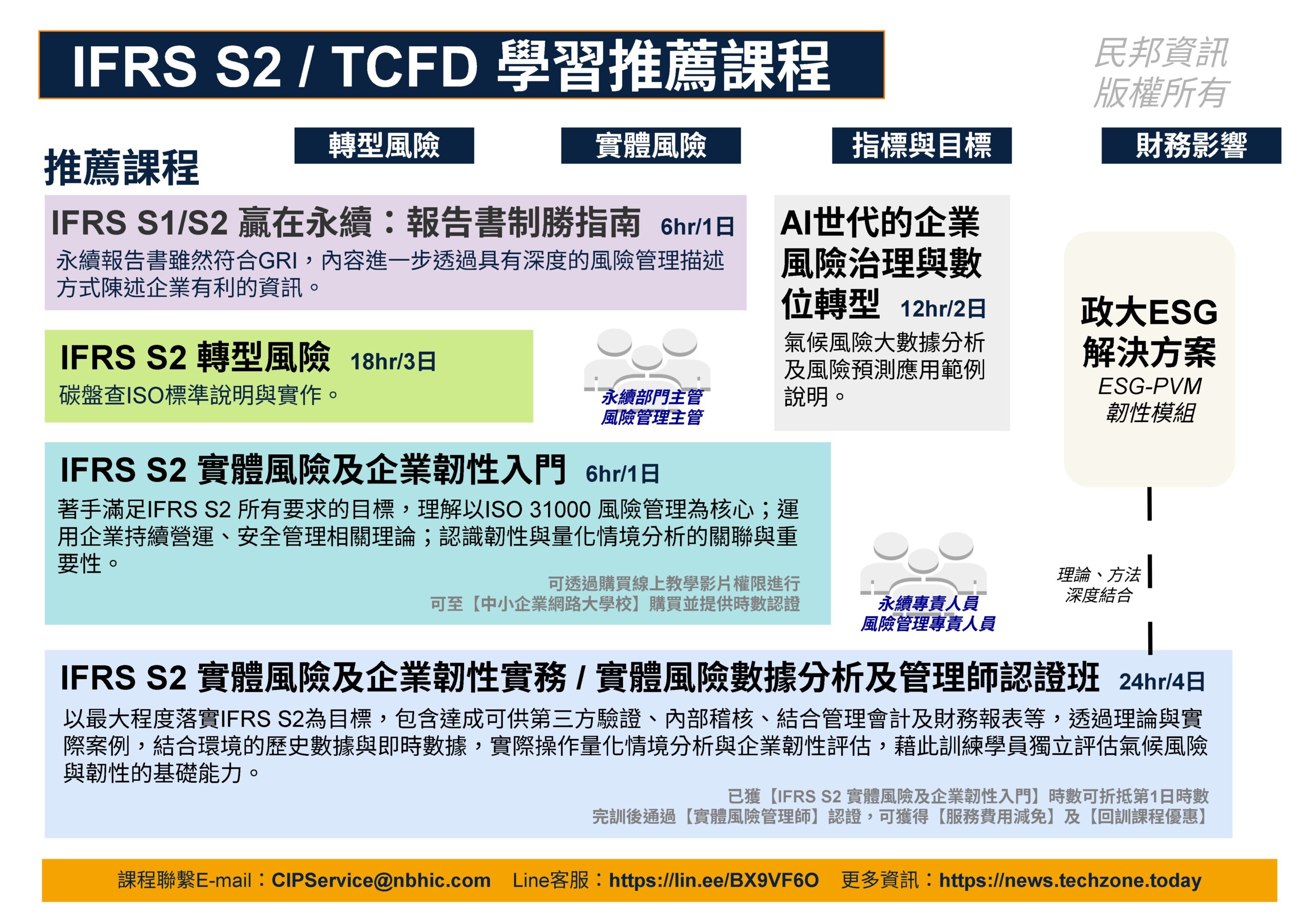 學員定位:企業管理部門、風險管理部門、彙整ESG/TCFD報告人員